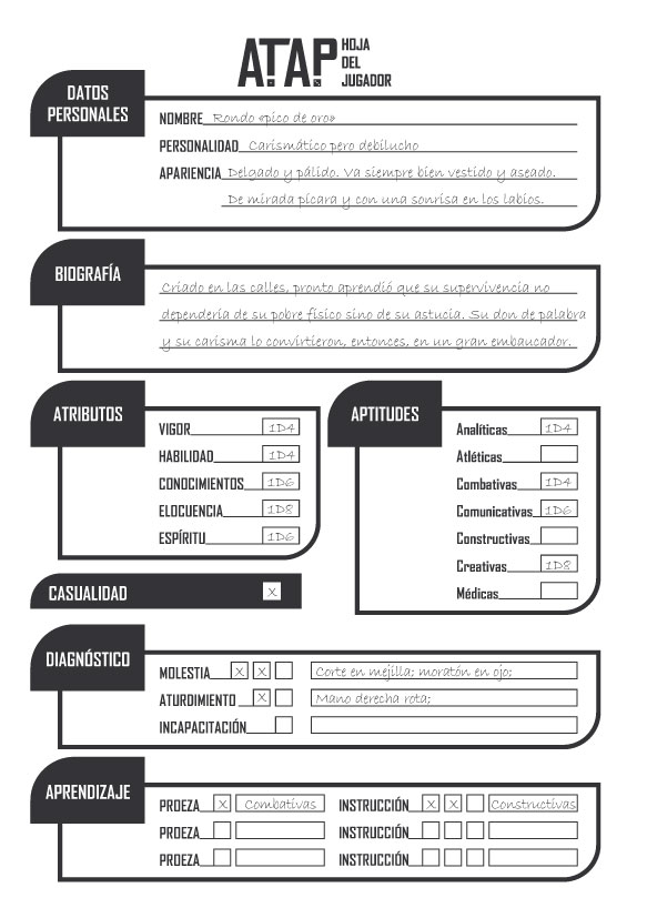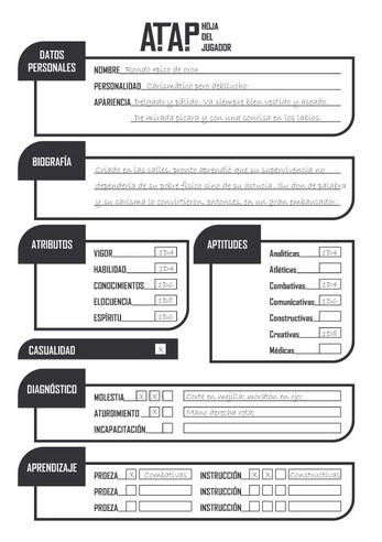 Este manual describe un sistema de juego al que se ha denominado ATAP, acrónimo de ATributo y APtitud, por ser los dos conceptos principales utilizados para gestionar el funcionamiento del sistema.